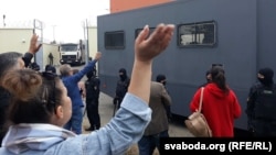 В Минске сотни родственников задержанных во время акций протеста после президентских выборов собрались у тюрьмы на улице Окрестина, пишет белорусская служба Радио Свобода.